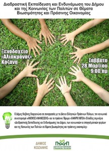 Σεμινάριο «Διαδραστικής Εκπαίδευσης και Ενδυνάμωσης του Δήμου, των κοινωνικών και επαγγελματικών φορέων και της Κοινωνίας των Πολιτών σε θέματα βιωσιμότητας και πράσινης Οικονομίας» | Κοζάνη, Σάββατο 28/03/2015