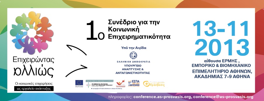 Η Αναπτυξιακή Σύμπραξη ΠΡΟΣΒΑΣΙΣ, μία κοινή πρωτοβουλία μη κερδοσκοπικού χαρακτήρα της ΕΛΕΠΑΠ, της ΠΟΣΓΚΑμεΑ, της εταιρείας συμβούλων επιχειρηματικής ανάπτυξης Mentoring A.E. και του Εμπορικού και Βιομηχανικού Επιμελητηρίου Αθηνών, διοργανώνει στην Αθήνα το 1ο Συνέδριο Κοινωνικής Επιχειρηματικότητας με τίτλο «Επιχειρώντας αλλιώς».