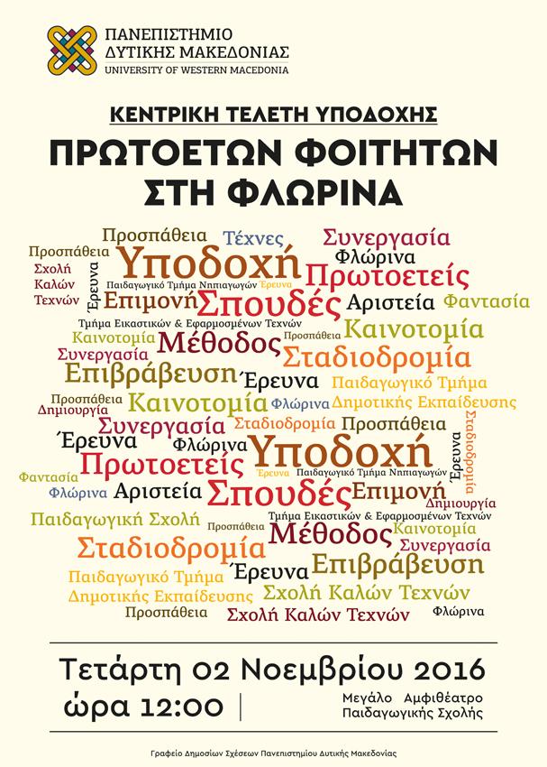 Ακαδημαϊκού Έτους 2016-17 του Πανεπιστημίου Δυτικής Μακεδονίας στην Φλώρινα.