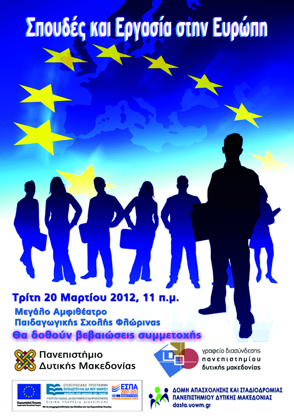 12.03.2012Το Γραφείο Διασύνδεσης Πανεπιστημίου Δυτικής Μακεδονίας οργανώνει ημερίδα την Τρίτη 20 Μαρτίου 2012 με θέμα «Σπουδές και Εργασία στην Ευρώπη».