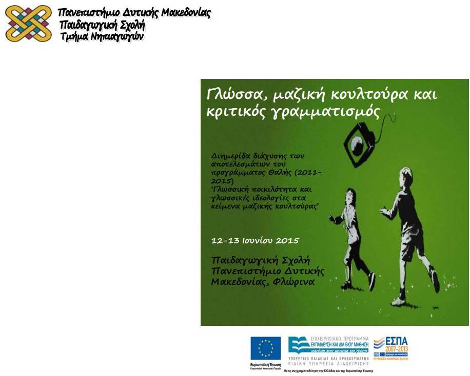 Διημερίδα «Γλώσσα, μαζική κουλτούρα και κριτικός γραμματισμός» (12-13/6/2015, Φλώρινα)
