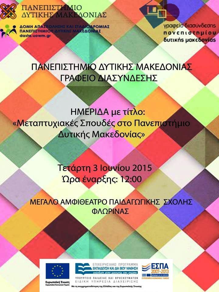 Ημερίδα: «Μεταπτυχιακές Σπουδές στο Πανεπιστήμιο Δυτικής Μακεδονίας» | Φλώρινα, 03.06.2015