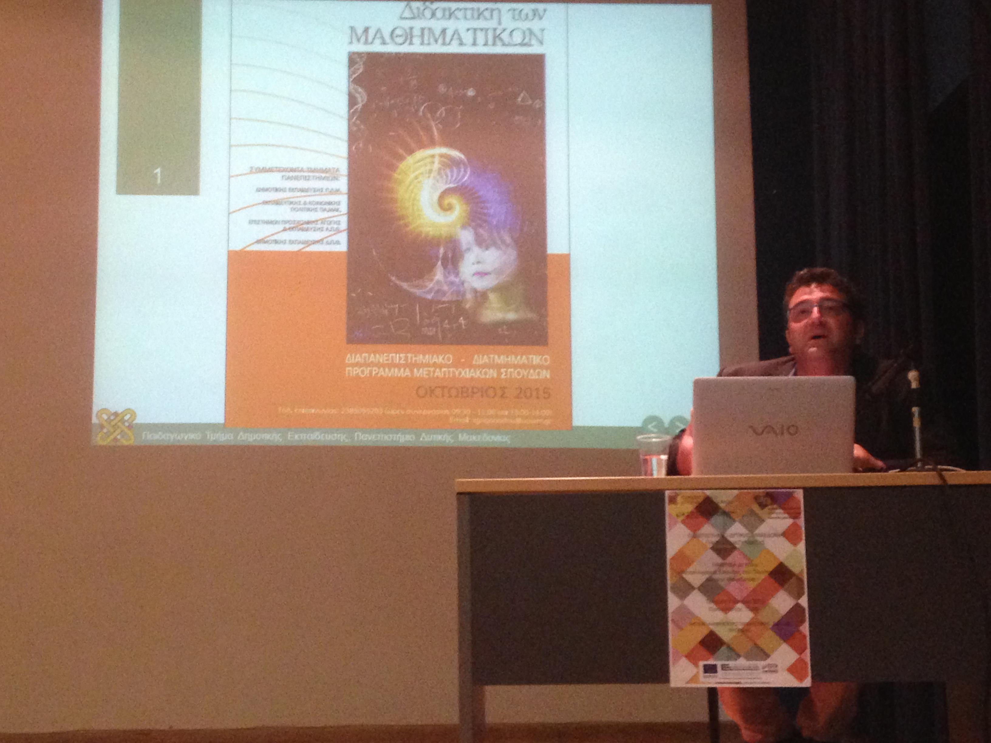 | Χαράλαμπος Λεμονίδης, Καθηγητής ΠΤΔΕ, Δ/ντής των ΠΜΣ «Επιστήμες της Αγωγής» του ΠΤΔΕ και «Διδακτική των Μαθηματικών»: «Το Πρόγραμμα Μεταπτυχιακών Σπουδών Επιστήμες της Αγωγής» & «Το Διατμηματικό Πρόγραμμα Μεταπτυχιακών Σπουδών (Πανεπιστήμιο Δυτικής Μακεδονίας, Αριστοτέλειο Πανεπιστήμιο Θεσσαλονίκης, Δημοκρίτειο Πανεπιστήμιο Θράκης, Πανεπιστήμιο Μακεδονίας Διδακτική των Μαθηματικών» |