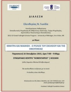 Διάλεξη με θέμα “Κίνητρα και μάθηση” από το Ίδρυμα Fullbright, την Παρασκευή 16/10, στο Κοβεντάρειο.