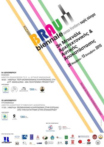 Στην Πτολεμαΐδα και στην Κοζάνη θα πραγματοποιηθούν οι επόμενες εκδηλώσεις της 3ης Μπιενάλε Αρχιτεκτονικής και Αστικής Αποκατάστασης BRAU3 (“Biennale del Restauro Architettonico & Urbano») Δυτικής Μακεδονίας.