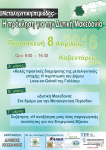 Το πρόγραμμα της ημερίδας “Μεταλιγνιτική περίοδος – Η Πρόκληση για τη Δ. Μακεδονία”, που θα πραγματοποιηθεί στην Κοζάνη, στις 8 Απριλίου 2016, στο Κοβεντάρειο.