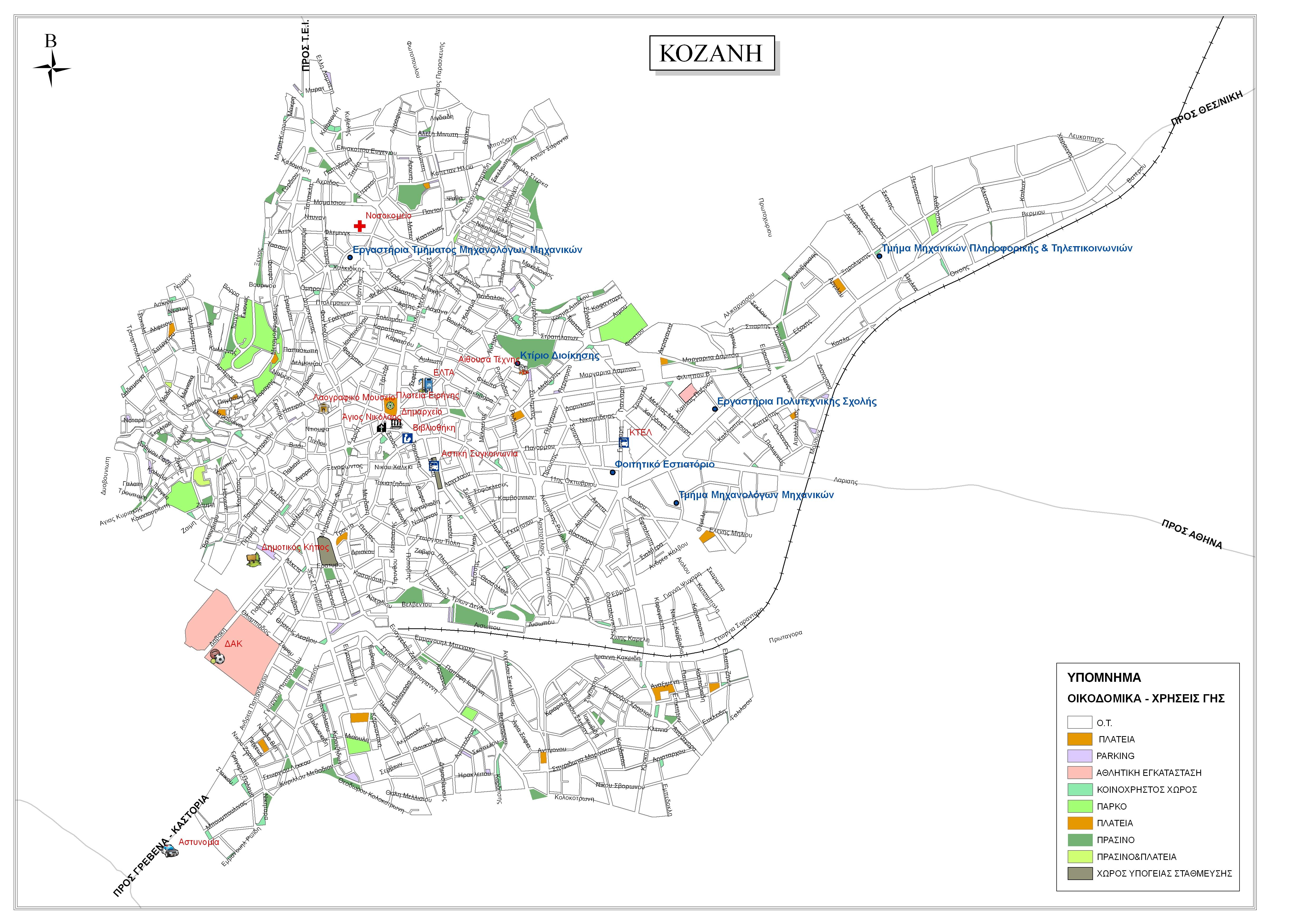 Χάρτης της Κοζάνης με χρήσιμες πληροφορίες: