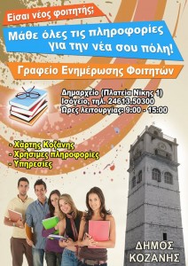 Το γραφείο βρίσκεται εντός του Δημαρχείου Κοζάνης (στο ισόγειο) και έχει ως στόχο να δίνει βασικές πληροφορίες για την Κοζάνη στους πρωτοετείς φοιτητές του Πανεπιστημίου και του ΤΕΙ Δυτικής Μακεδονίας.