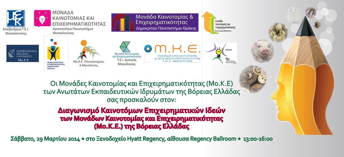 Η ΜΟΚΕ ΠΔΜ συμμετέχει στο Διαγωνισμό Καινοτόμων Επιχειρηματικών Ιδεών των (Μο.Κ.Ε.) της Βόρειας Ελλάδας, η εκδήλωση θα πραγματοποιηθεί στη Θεσσαλονίκη το Σάββατο 29 Μαρτίου 2014.