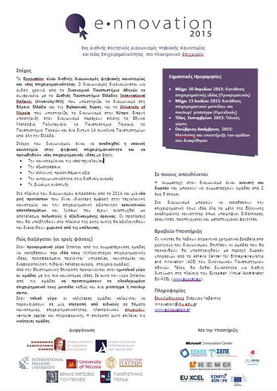 Ennovation 2015 | 8ος Διεθνής Φοιτητικός Διαγωνισμός Ψηφιακής Καινοτομίας και Νέας Επιχειρηματικότητας στο Ηλεκτρονικό Επιχειρείν