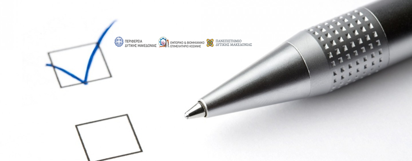 Στο πλαίσιο προγραμματικής σύμβασης του έργου με τίτλο: «Διερεύνηση της κλαδικής επιχειρηματικότητας στην Περιφέρεια Δυτικής Μακεδονίας και της δυνατότητας πρωτογενούς παραγωγής στον κλάδο της μεταποίησης μέσα από την παραγωγή πρώτων υλών που εισάγονται μέχρι σήμερα από τοπικές επιχειρήσεις», μεταξύ της Περιφέρειας Δυτικής Μακεδονίας, του Εμπορικού και Βιομηχανικού Επιμελητηρίου Κοζάνης και του Πανεπιστημίου Δυτικής Μακεδονίας καλούνται οι επιχειρηματίες της Περιφέρειας Δυτικής Μακεδονίας να συμμετέχουν στην έρευνα που διεξάγεται από το Πανεπιστήμιο Δυτικής Μακεδονίας με σκοπό: